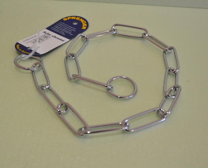 Цепочка Sprenger из хромированной стали с длинным звеном -- универсальная цепочка для собак. Может использоваться при воспитании и дрессировке щенков и собак как рывковая цепочка. Традиционно используется как выставочная цепочка для таких пород как ротвейлер, немецкая овчарка (при подготовке и участии в выставках).