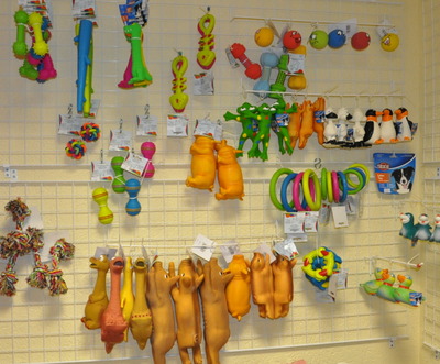 Всегда большой выбор игрушек для маленьких, средних и крупных собак, а также для кошек. Игрушки латексные, резиновые, виниловые, канатики, веревочки, кольца, шарики, гантельки, зверушки, мячики и прочие мелкие радости для ваших питомцев!