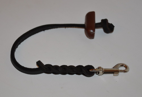 Водилка из высококлассной кожи ручной работы. Мягкая, прочная, стильная. Длина 30 см, на конце деревянная ручка для удобного управления собакой. Крепится к цепочке кобре с помощью небольшого стального карабина. Хорошо подчеркнет достоинства вашей собаки!